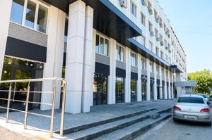 Благоустроенная территория, чистый фасад, высаженные деревья. Кардинально изменили внешний вид не только дома, но и улицы. Единый стиль входных групп, окон, кондиционеров — придали зданию в центре города соответствующий его статусу вид.